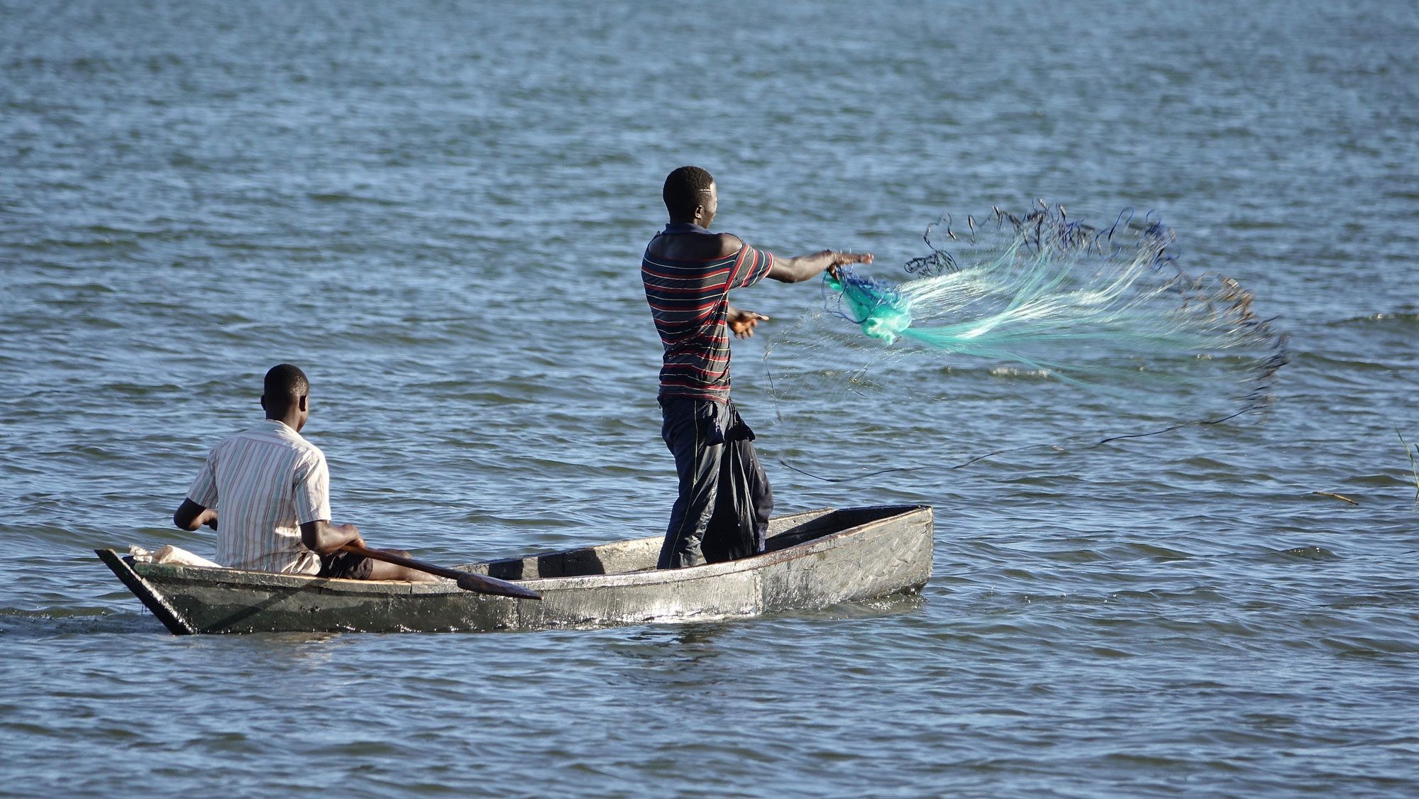 Fishermen cast their net seeking silverfish.