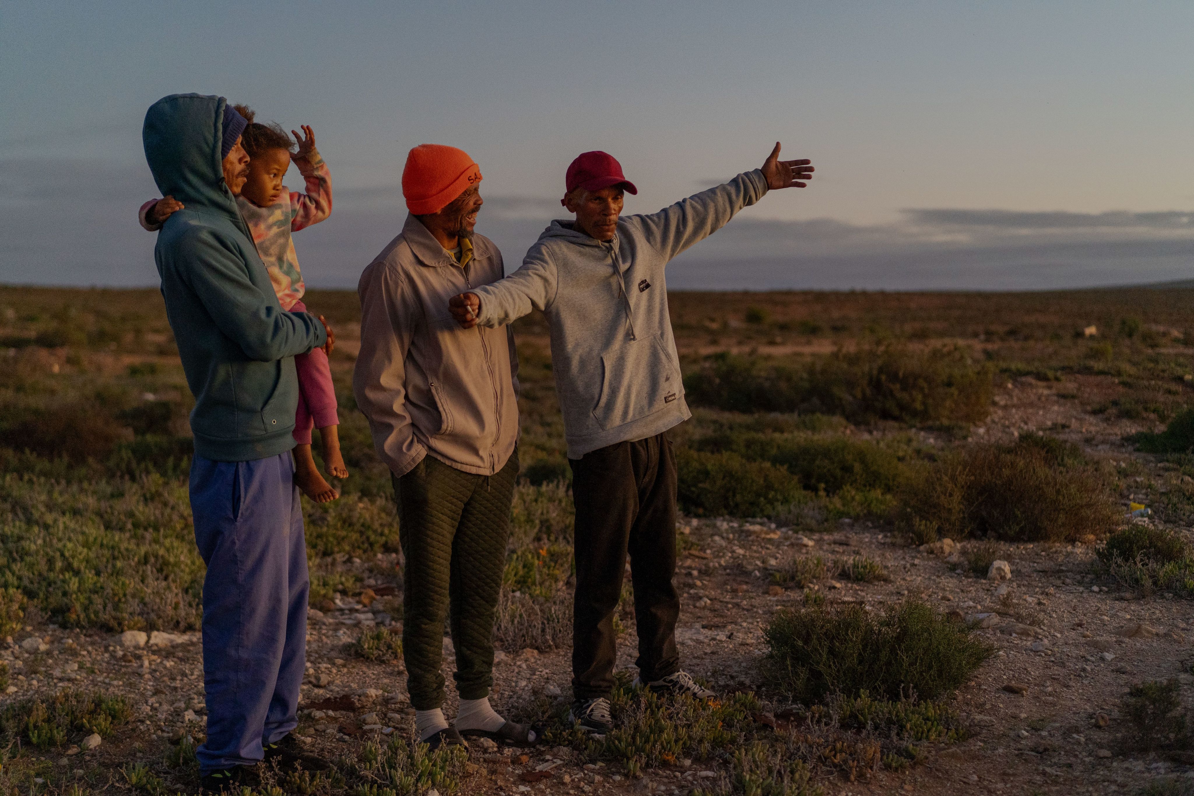 Andre Cloete with family members outside his home near the Olifants River delta, Western Cape, South Africa. Photo: Barry Christianson.
