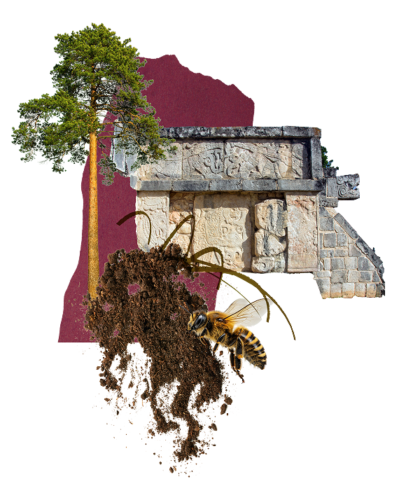 In my community, we have this collective space with other young people where we are working on 1 hectare of land. In the agroforestry system, we cultivate more than two hundred native trees, we are taking care of three varieties of native bees, and we have made the buildings with ancestral Mayan constructions.